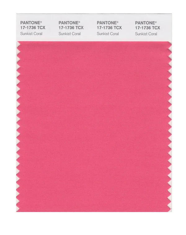 Sunkist Coral is a medium-toned pink from the Pantone TCX collection, identified by the code 17-1736 TCX. This warm tone with its vibrant and bold character makes it an excellent choice for feminine products, romantic themes, and wellness branding.