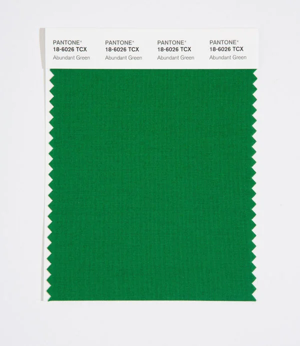 Abundant Green is a deep and rich color from the Pantone TCX collection, identified by the code 18-6026 TCX. This cool tone with its vibrant and bold character makes it an excellent choice for sophisticated branding, medical products, and calming design.