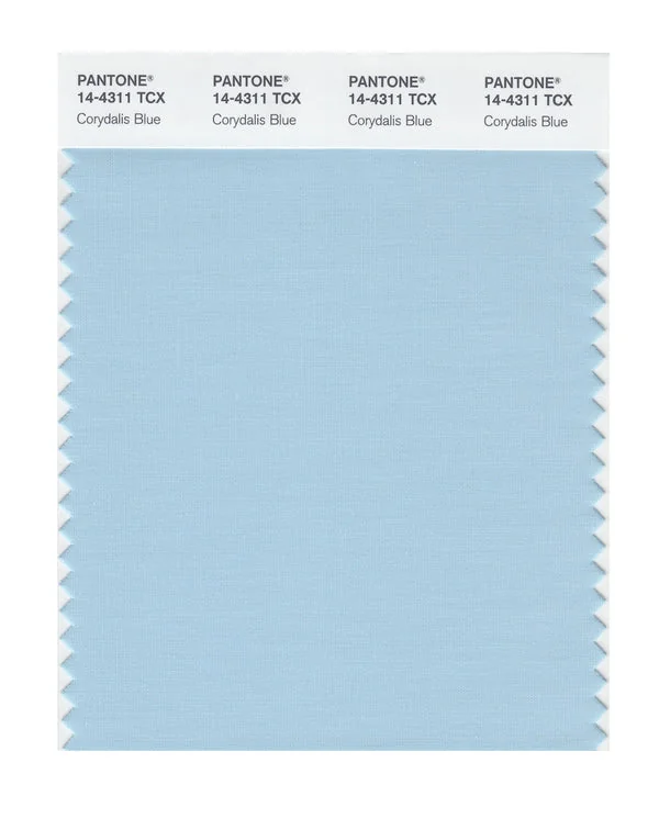 Corydalis Blue is a light and airy color from the Pantone TCX collection, identified by the code 14-4311 TCX. This cool tone with its balanced character makes it an excellent choice for digital branding, tech products, and modern design.