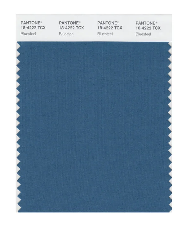Bluesteel is a medium-toned color from the Pantone TCX collection, identified by the code 18-4222 TCX. This cool tone with its balanced character makes it an excellent choice for industrial design, modern architecture, and tech products.