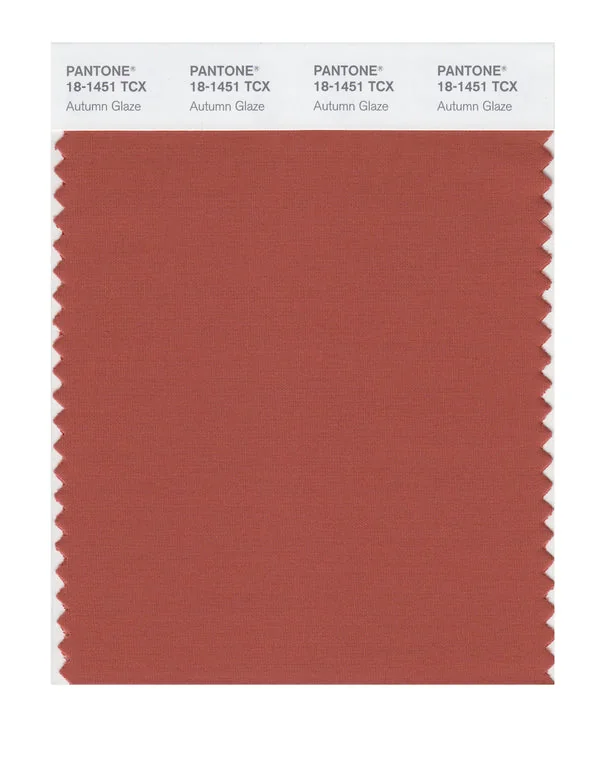 Autumn Glaze is a medium-toned color from the Pantone TCX collection, identified by the code 18-1451 TCX. This warm tone with its balanced character makes it an excellent choice for luxury fashion, dramatic interiors, and premium branding.