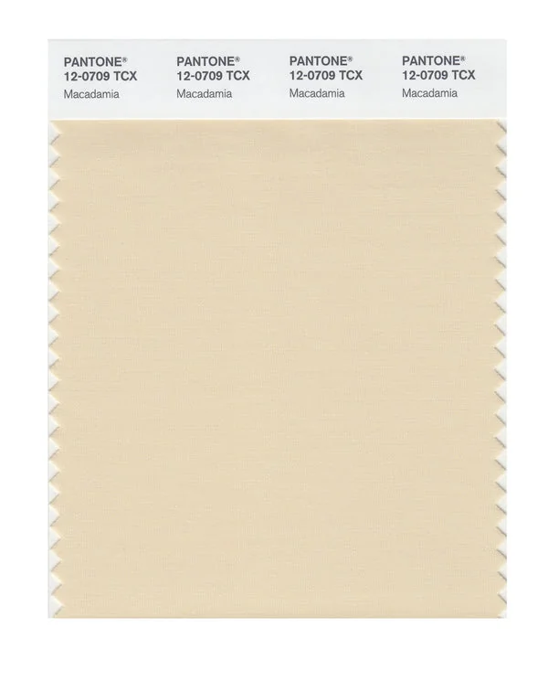 Macadamia is a light and airy color from the Pantone TCX collection, identified by the code 12-0709 TCX. This warm tone with its soft and pastel character makes it an excellent choice for soft femininity, wellness branding, and gentle aesthetics.