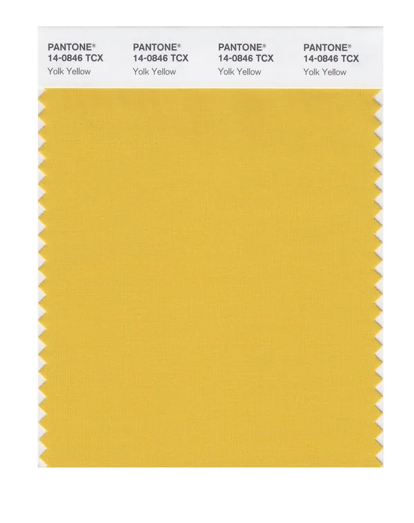 Yolk Yellow is a medium-toned color from the Pantone TCX collection, identified by the code 14-0846 TCX. This warm tone with its vibrant and bold character makes it an excellent choice for luxury branding, premium products, and elegant accents.