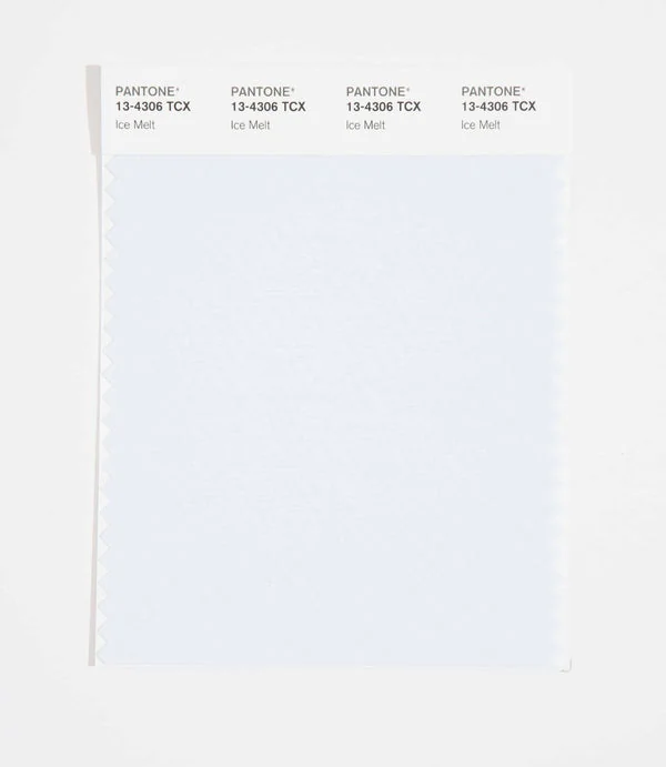 Ice Melt is a light and airy color from the Pantone TCX collection, identified by the code 13-4306 TCX. This cool tone with its balanced character makes it an excellent choice for wellness products, gentle branding, and calming design.