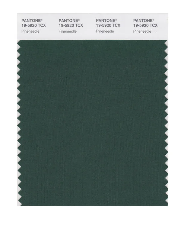 Pineneedle is a deep and rich color from the Pantone TCX collection, identified by the code 19-5920 TCX. This cool tone with its balanced character makes it an excellent choice for wellness branding, spa environments, and serene design.