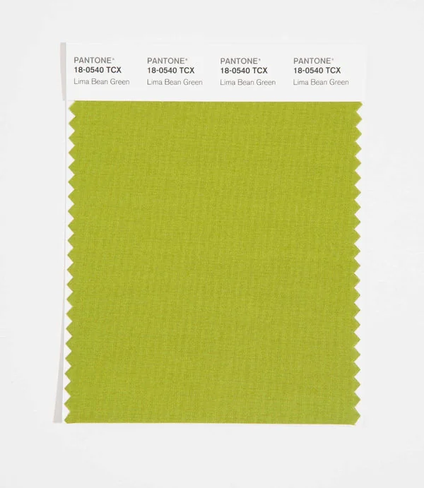 Lima Bean Green is a medium-toned color from the Pantone TCX collection, identified by the code 18-0540 TCX. This cool tone with its balanced character makes it an excellent choice for natural products, military themes, and earthy design.