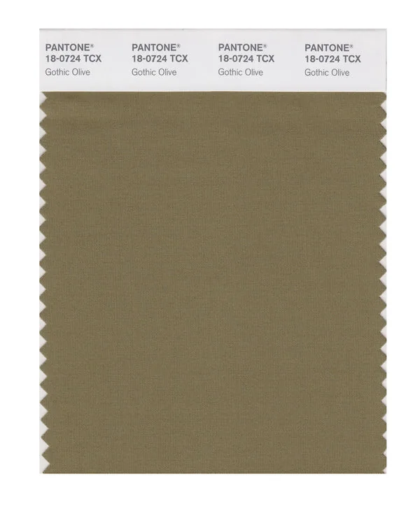 Gothic Olive is a medium-toned color from the Pantone TCX collection, identified by the code 18-0724 TCX. This warm tone with its balanced character makes it an excellent choice for warm luxury, artisanal products, and natural branding.