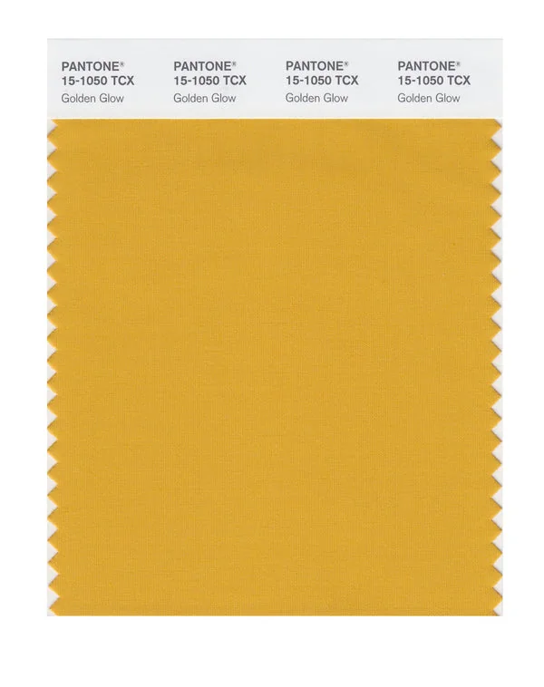 Golden Glow is a medium-toned color from the Pantone TCX collection, identified by the code 15-1050 TCX. This warm tone with its balanced character makes it an excellent choice for warm luxury, artisanal products, and natural branding.