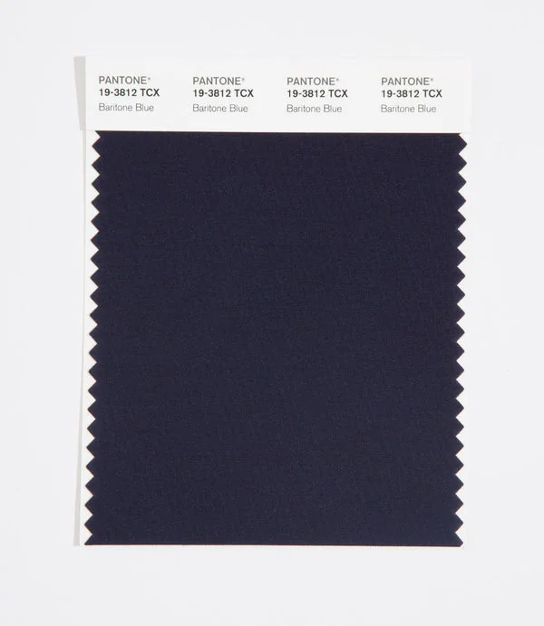 Baritone Blue is a deep and rich color from the Pantone TCX collection, identified by the code 19-3812 TCX. This cool tone with its balanced character makes it an excellent choice for professional services, maritime themes, and classic design.