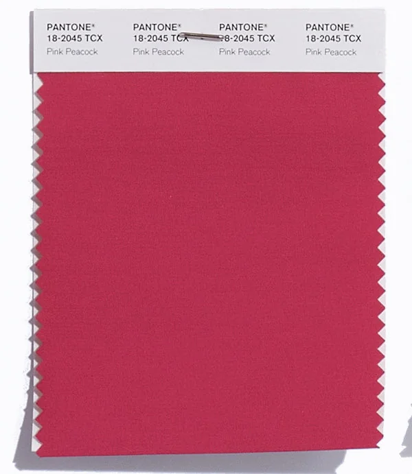 Pink Peacock is a medium-toned red from the Pantone TCX collection, identified by the code 18-2045 TCX. This warm tone with its vibrant and bold character makes it an excellent choice for bold branding, passionate designs, and statement pieces.