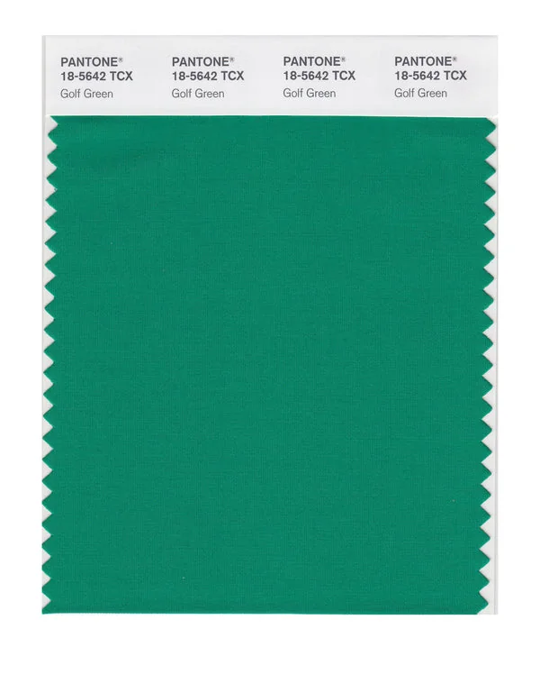 Golf Green is a deep and rich color from the Pantone TCX collection, identified by the code 18-5642 TCX. This cool tone with its vibrant and bold character makes it an excellent choice for wellness branding, spa environments, and serene design.