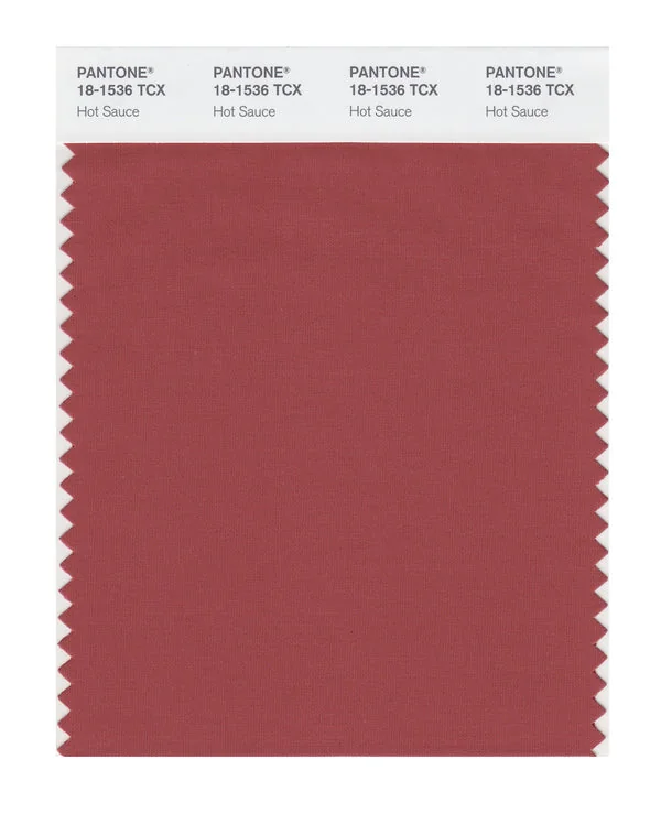 Hot Sauce is a medium-toned color from the Pantone TCX collection, identified by the code 18-1536 TCX. This warm tone with its balanced character makes it an excellent choice for luxury fashion, dramatic interiors, and premium branding.
