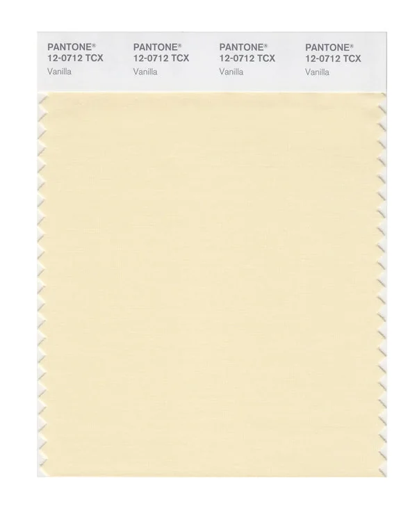 Vanilla is a light and airy color from the Pantone TCX collection, identified by the code 12-0712 TCX. This warm tone with its balanced character makes it an excellent choice for soft warmth, wellness products, and gentle branding.