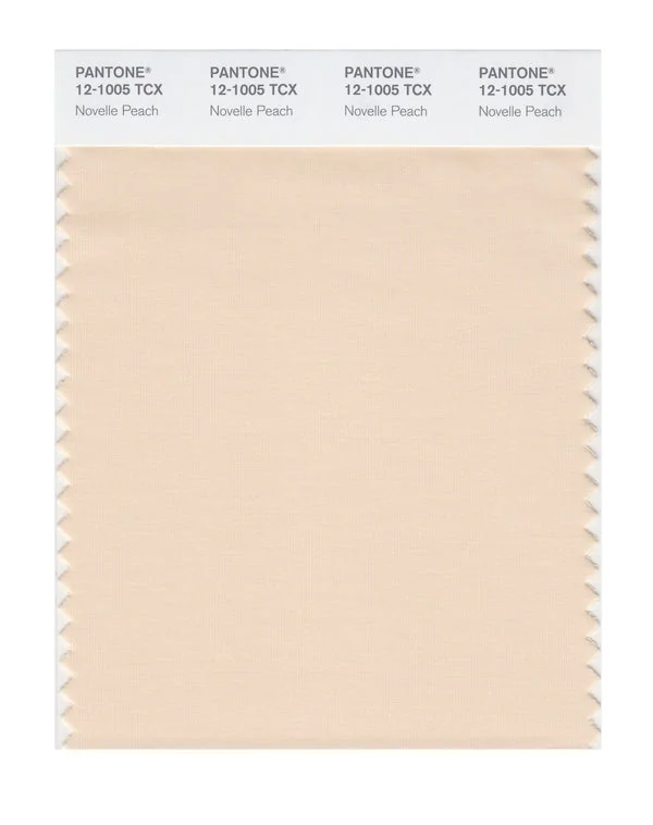 Novelle Peach is a light and airy color from the Pantone TCX collection, identified by the code 12-1005 TCX. This warm tone with its soft and pastel character makes it an excellent choice for soft femininity, wellness branding, and gentle aesthetics.
