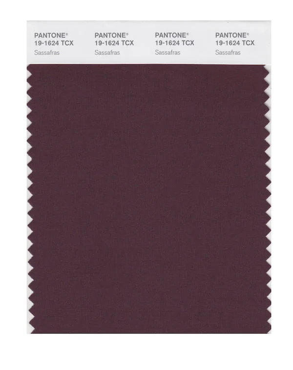 Sassafras is a deep and rich red from the Pantone TCX collection, identified by the code 19-1624 TCX. This warm tone with its balanced character makes it an excellent choice for bold branding, passionate designs, and statement pieces.