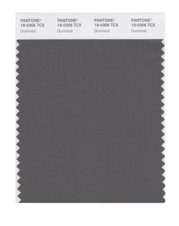 Gunmetal is a medium-toned color from the Pantone TCX collection, identified by the code 18-0306 TCX. This cool tone with its balanced character makes it an excellent choice for sophisticated neutrals, urban design, and modern aesthetics.