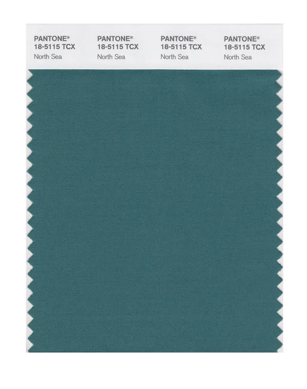 North Sea is a medium-toned color from the Pantone TCX collection, identified by the code 18-5115 TCX. This cool tone with its balanced character makes it an excellent choice for wellness branding, spa environments, and serene design.