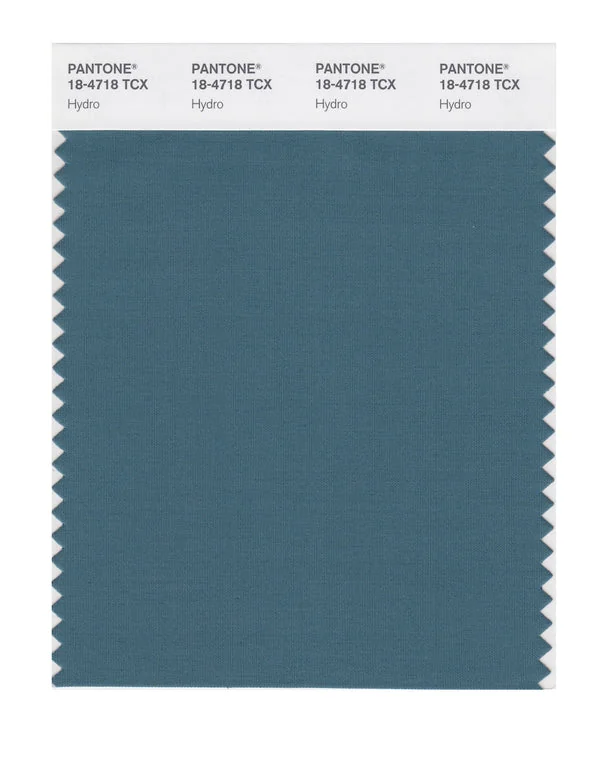 Hydro is a medium-toned color from the Pantone TCX collection, identified by the code 18-4718 TCX. This cool tone with its balanced character makes it an excellent choice for industrial design, modern architecture, and tech products.