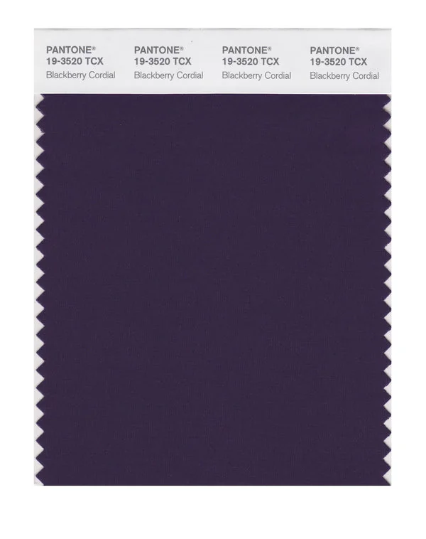 Blackberry Cordial is a deep and rich color from the Pantone TCX collection, identified by the code 19-3520 TCX. This cool tone with its balanced character makes it an excellent choice for deep sophistication, premium denim, and artistic branding.