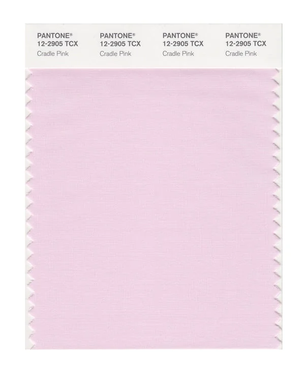 Cradle Pink is a light and airy color from the Pantone TCX collection, identified by the code 12-2905 TCX. This warm tone with its soft and pastel character makes it an excellent choice for baby products, gentle care, and soft branding.