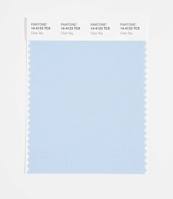 Clear Sky is a light and airy color from the Pantone TCX collection, identified by the code 14-4123 TCX. This cool tone with its balanced character makes it an excellent choice for digital branding, tech products, and modern design.
