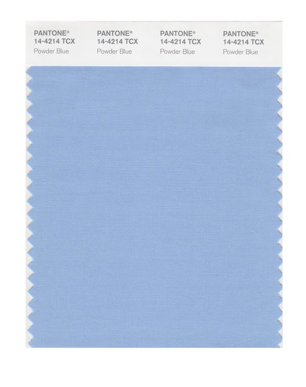 Powder Blue is a light and airy blue from the Pantone TCX collection, identified by the code 14-4214 TCX. This cool tone with its balanced character makes it an excellent choice for corporate branding, healthcare, and professional design.