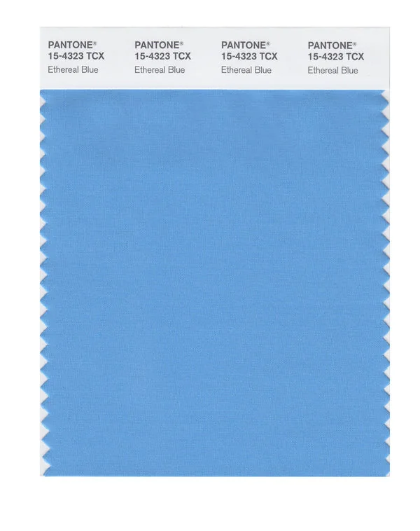 Ethereal Blue is a medium-toned color from the Pantone TCX collection, identified by the code 15-4323 TCX. This cool tone with its balanced character makes it an excellent choice for industrial design, modern architecture, and tech products.
