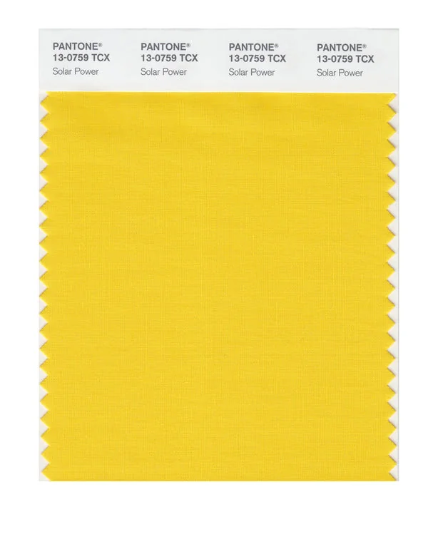 Solar Power is a medium-toned color from the Pantone TCX collection, identified by the code 13-0759 TCX. This warm tone with its vibrant and bold character makes it an excellent choice for warm luxury, artisanal products, and natural branding.