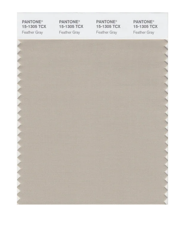 Feather Gray is a medium-toned color from the Pantone TCX collection, identified by the code 15-1305 TCX. This warm tone with its balanced character makes it an excellent choice for soft femininity, wellness branding, and gentle aesthetics.