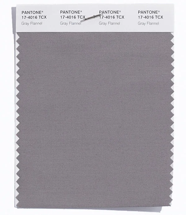 Gray Flannel is a medium-toned color from the Pantone TCX collection, identified by the code 17-4016 TCX. This warm tone with its balanced character makes it an excellent choice for sophisticated neutrals, urban design, and modern aesthetics.