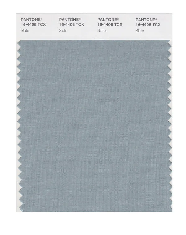 Slate is a medium-toned color from the Pantone TCX collection, identified by the code 16-4408 TCX. This cool tone with its balanced character makes it an excellent choice for industrial design, modern architecture, and tech products.