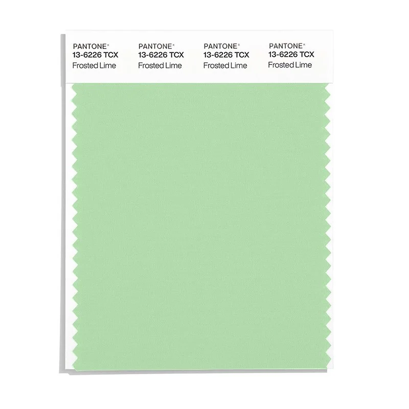 Frosted Lime is a light and airy green from the Pantone TCX collection, identified by the code 13-6226 TCX. This cool tone with its balanced character makes it an excellent choice for sustainability, nature brands, and eco-friendly design.