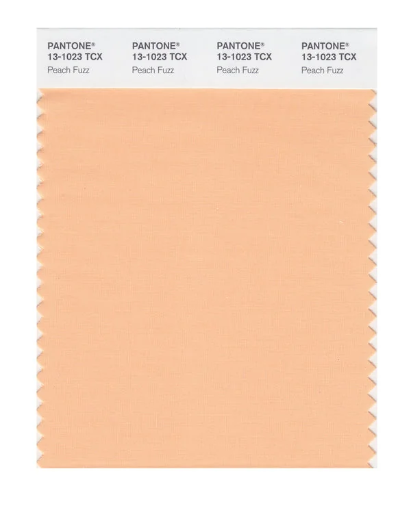 Peach Fuzz is a light and airy color from the Pantone TCX collection, identified by the code 13-1023 TCX. This warm tone with its vibrant and bold character makes it an excellent choice for soft femininity, wellness branding, and gentle aesthetics.