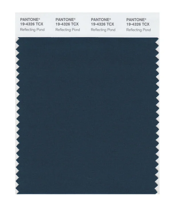Reflecting Pond is a deep and rich color from the Pantone TCX collection, identified by the code 19-4326 TCX. This cool tone with its balanced character makes it an excellent choice for professional services, maritime themes, and classic design.