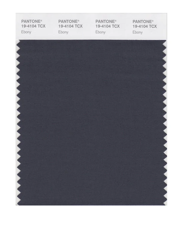 Ebony is a deep and rich color from the Pantone TCX collection, identified by the code 19-4104 TCX. This cool tone with its balanced character makes it an excellent choice for premium branding, luxury services, and sophisticated design.