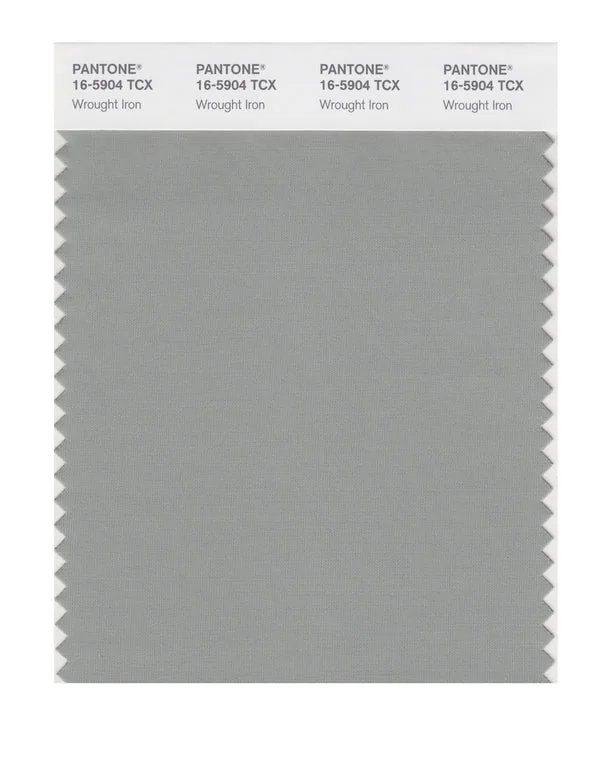 Wrought Iron is a medium-toned gray from the Pantone TCX collection, identified by the code 16-5904 TCX. This cool tone with its balanced character makes it an excellent choice for professional environments, industrial design, and neutral foundations.
