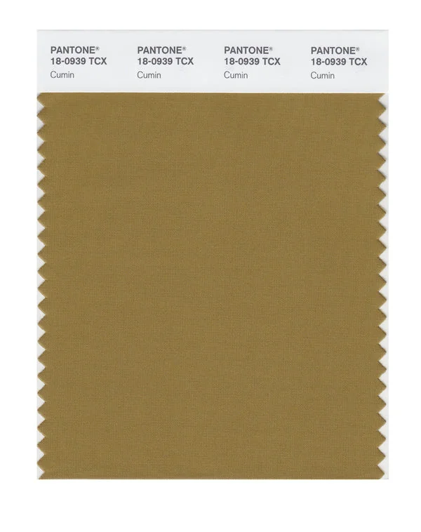 Cumin is a medium-toned color from the Pantone TCX collection, identified by the code 18-0939 TCX. This warm tone with its balanced character makes it an excellent choice for warm luxury, artisanal products, and natural branding.