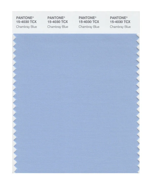 Chambray Blue is a light and airy blue from the Pantone TCX collection, identified by the code 15-4030 TCX. This cool tone with its balanced character makes it an excellent choice for corporate branding, healthcare, and professional design.