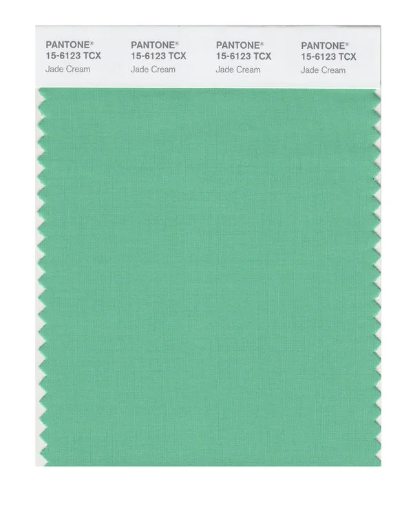 Jade Cream is a medium-toned color from the Pantone TCX collection, identified by the code 15-6123 TCX. This cool tone with its balanced character makes it an excellent choice for wellness branding, spa environments, and serene design.