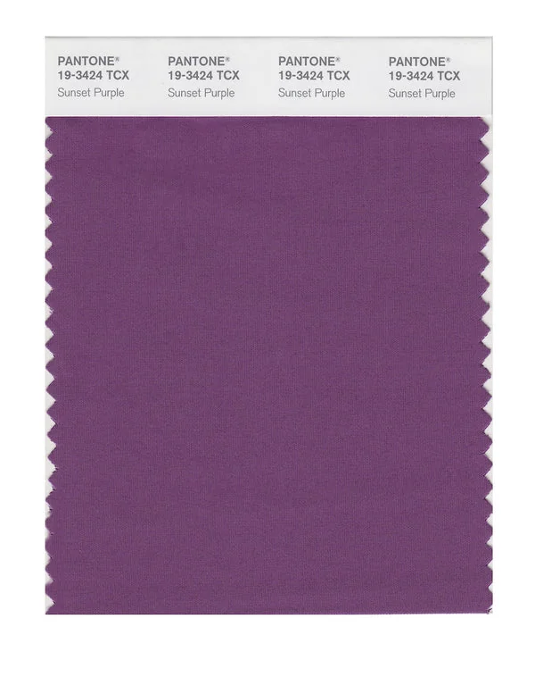 Sunset Purple is a medium-toned color from the Pantone TCX collection, identified by the code 19-3424 TCX. This warm tone with its balanced character makes it an excellent choice for bold fashion, energetic branding, and statement design.