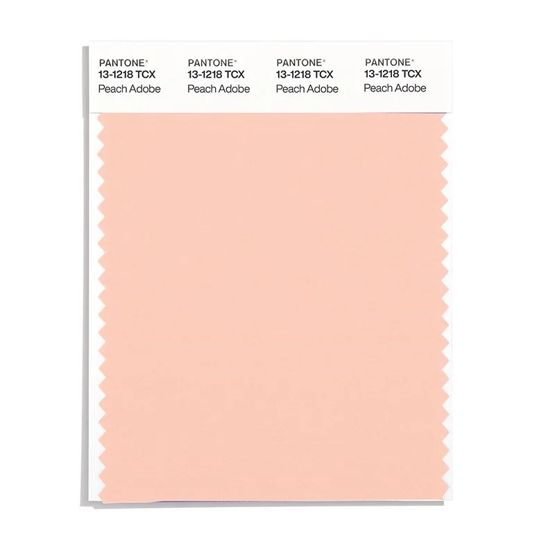 Peach Adobe is a light and airy color from the Pantone TCX collection, identified by the code 13-1218 TCX. This warm tone with its vibrant and bold character makes it an excellent choice for soft warmth, wellness products, and gentle branding.