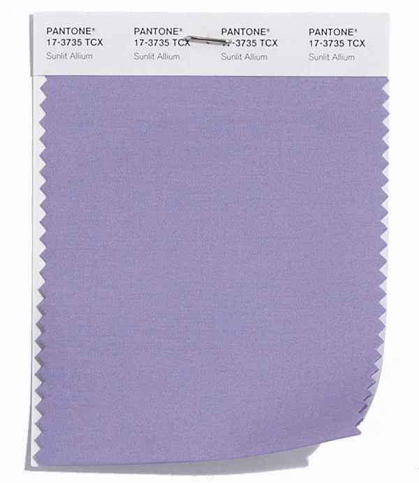 Sunlit Allium is a medium-toned color from the Pantone TCX collection, identified by the code 17-3735 TCX. This cool tone with its balanced character makes it an excellent choice for soft elegance, baby products, and gentle branding.